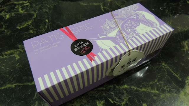這條蛋糕沒有特殊的造型,標榜的就是100%天然芋泥,不含防腐劑,所以賞味期限只有兩天,離開5°C的冷藏室只能待兩個小時,而且芋泥含量超多;打開蛋糕盒子就聞到濃濃的芋香,從蛋糕的側面可以看得到兩層厚厚的芋泥,果真是重芋泥蛋糕。切了一塊來吃,原來除了入口即化的芋泥以外,還有切成碎丁的芋頭塊和在裡面,口感是多層次的,甜度適中,讓人吃完一塊還想再切第二塊來吃。