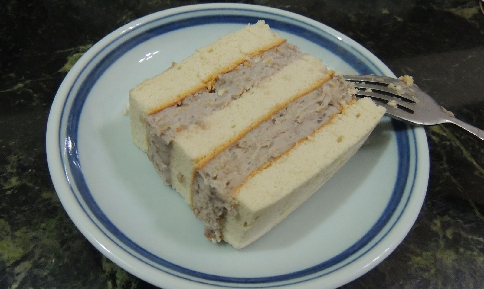 蛋糕的層次分明,芋泥就佔了厚厚的兩層